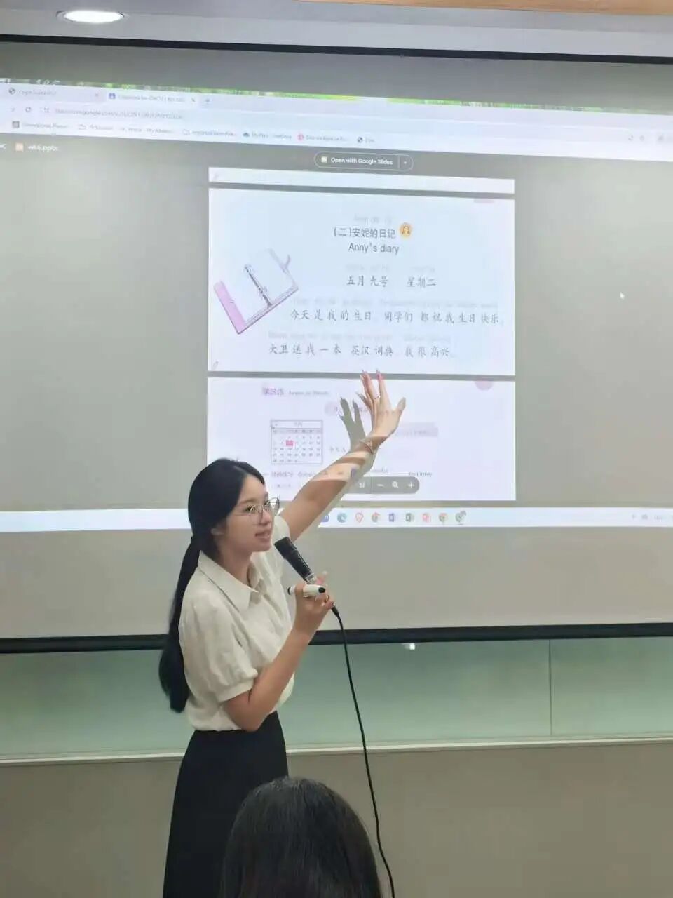 更难得的是,姜晨蓓和吴逸凡还获得了独立授课的实践机会。在实际教学中,她们面对语言障碍,灵活运用英语辅助解释,尽力减少理解误差,并有效应对课堂突发状况。这些真实的教学场景,让她们切身体会到“在教中学、在学中教”的深刻含义,积累了远超书本的实战经验。