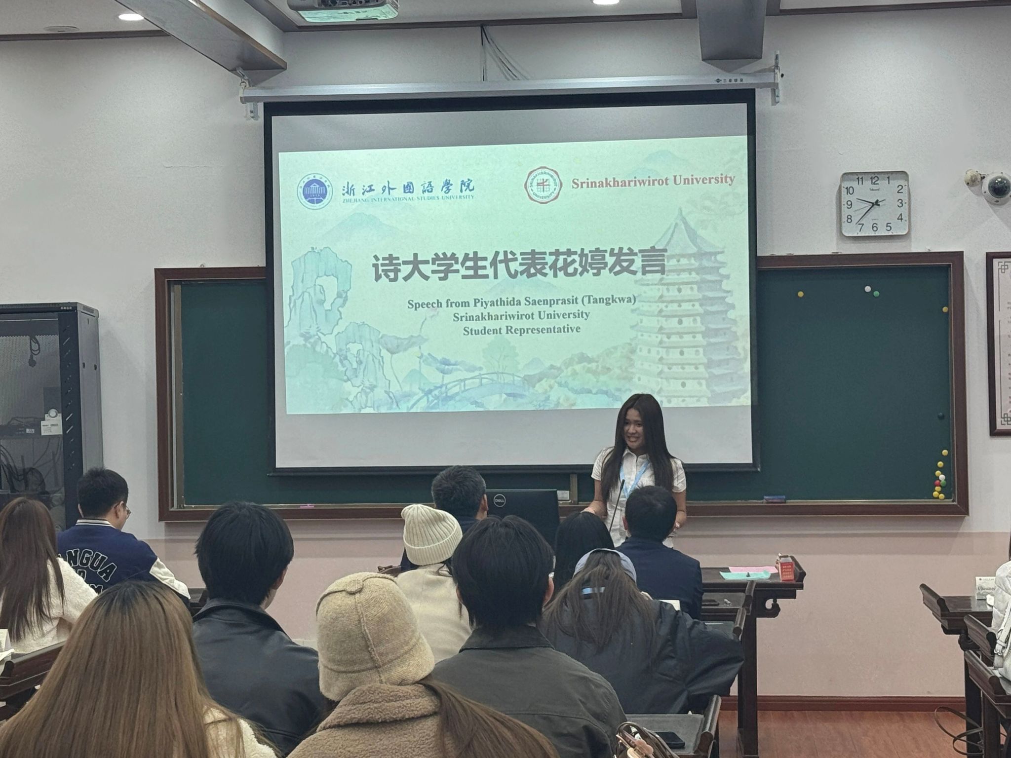 汉语国际教育专业学生代表吴逸凡、姜晨蓓,以及诗大学生代表花婷先后发言。他们均对此次冬令营活动的开展充满期待,纷纷表示将珍惜此次交流机会,为推动中泰文化友好交流持续贡献青春力量,共同展望两国文化交流更加繁荣的未来。