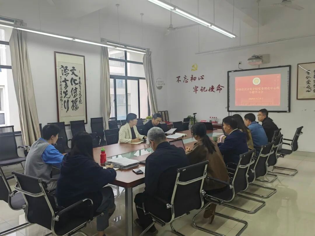11月6日上午,中国语言文化学院召开理论中心组专题学习会,深入学习贯彻党的二十届四中全会精神及《习近平谈治国理政》第五卷,并聚焦本科教育教学审核评估工作推进实际任务。学院党委书记杨飞群、院长马宏程、理论中心组成员、各系主任、党支部书记参加学习。