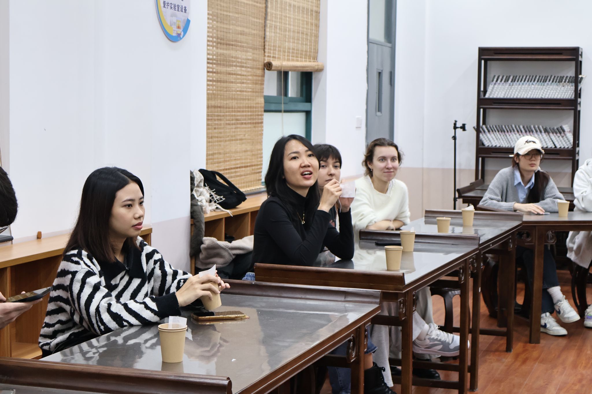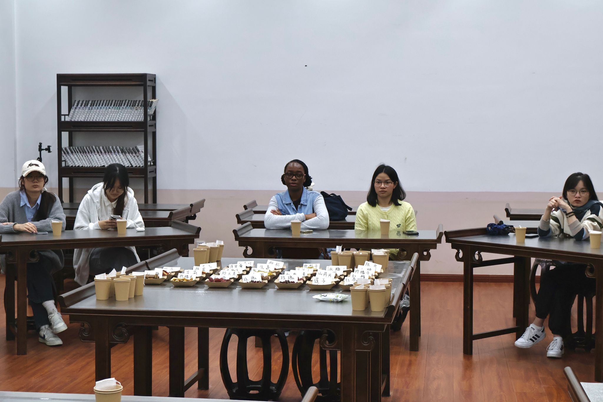 同学们纷纷围拢到食材桌前,根据自己的口味与需求挑选搭配。大家小心翼翼地将食材装入棉纸茶包,用棉线轻轻系好,有留学生兴奋地展示自己的作品。负责人们将同学们亲手制作的茶包逐一接过,用沸水缓缓冲泡。热水注入杯中,红枣的甜香、桂圆的温润、陈皮的清醇渐渐交融,茶汤泛起琥珀色的光晕,氤氲的热气中满是自然的芬芳。当第一杯亲手制作的养生茶递到留学生手中,他们轻轻啜饮,脸上瞬间绽开惊喜的笑容:“哇,比想象中更好喝!”不少同学喝完一杯,立刻举手要求“续杯”,有的则细细品味,和身边的同伴分享感受。更有同学希望能带一份茶包回去送给朋友。