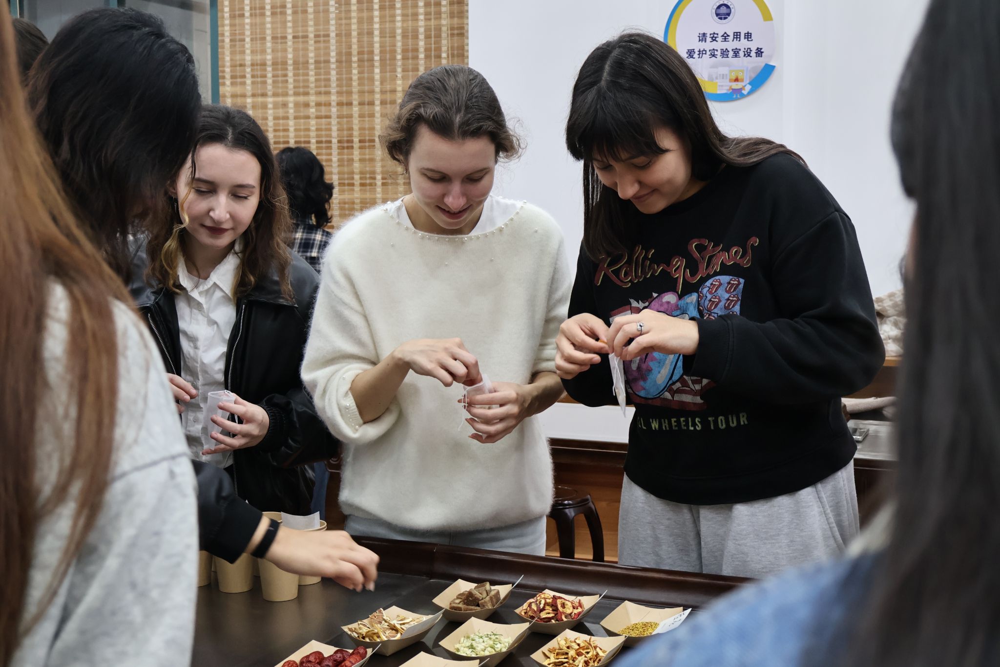 立冬,是二十四节气中第19个节气,也是冬季首个节气。它与立春等合称“四立”,有“万物收藏”之意,标志着万物开始休养闭蓄。在这个从秋寒向冬冻过渡的节点,中文学院国际交流部在望D214教室组织了一场以“茶”会友的养生茶包制作活动,同国际同学一起看茶烟袅袅,驱散寒意。