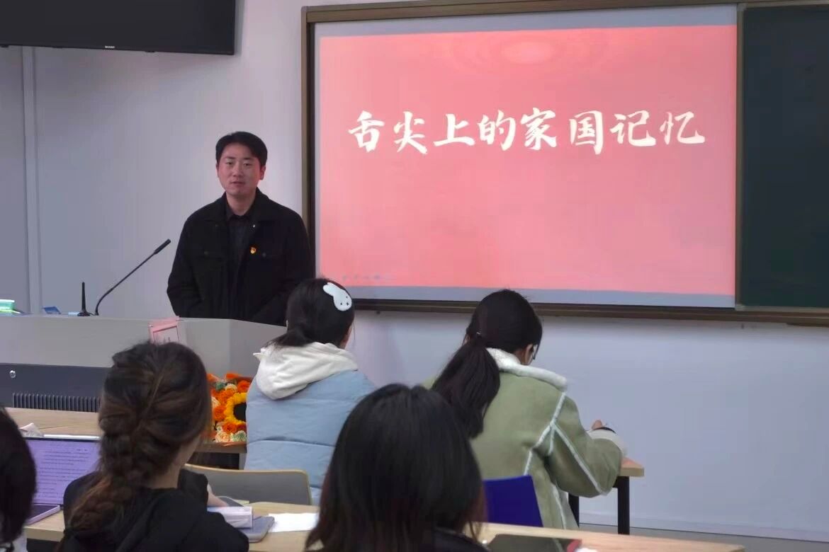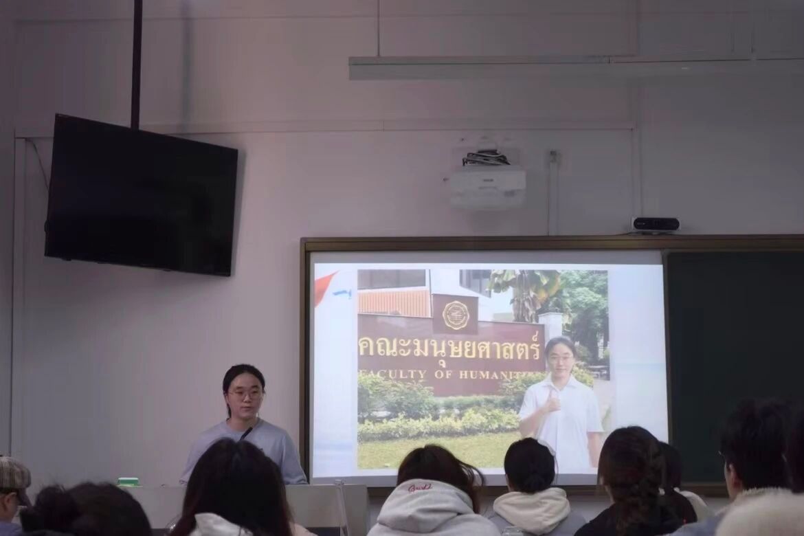 我校“青学青”宣讲团成员陈宗正老师、吕亚男、吴逸凡以自身经历践行“青学青”精神,学员认真听讲、积极互动,现场氛围热烈。宣讲中,网络与新媒体专业学生党支部书记陈宗正老师以“一把炒面一把雪”的革命故事生动展现志愿军在极端困境中的坚韧与民族凝聚力,吕亚男同学则分享从团委工作到国际志愿服务的成长经历,吴逸凡同学生动分享了她在中文角、中美青年交流和泰国汉教实践中,以文化为纽带促进中外交流的动人故事。