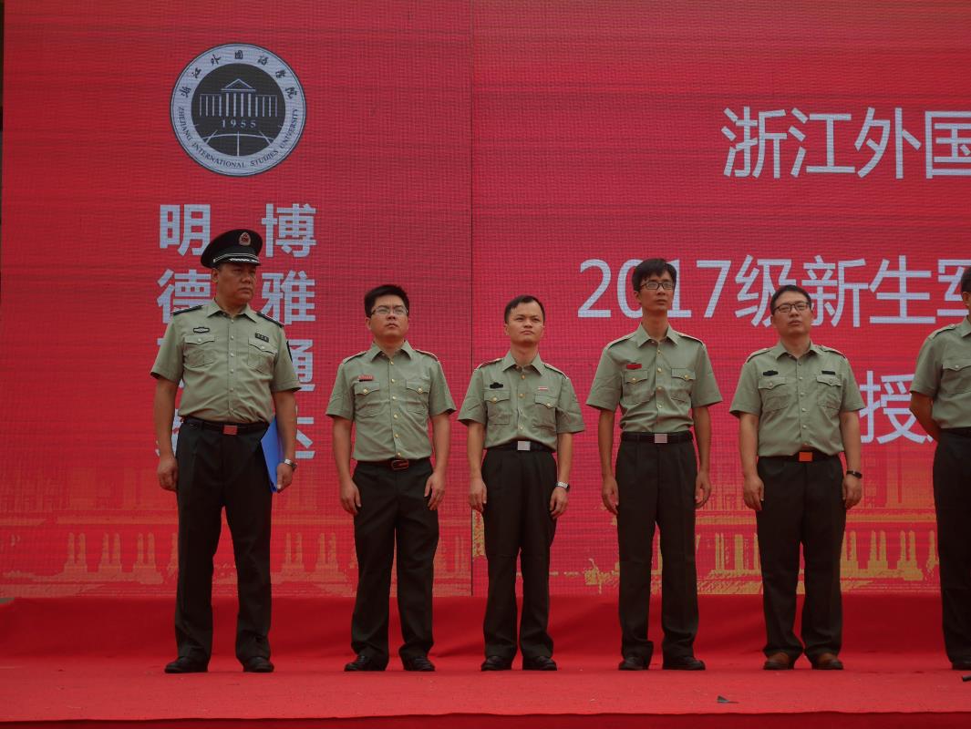 9月24日下午,浙江外国语学院2017级新生军训动员大会在田径场举行。即日起,我校2017级本科新生开始为期7天的军训,9月30日举行阅兵式。校党委副书记赵伐、副校长赵庆荣、校学生处处长盛玲及军训团和部分院系领导出席此次动员大会。我院党总支副书记陆卫斌、学工办主任、2017级新生辅导员周礼以及全体2017级新生参加动员大会。