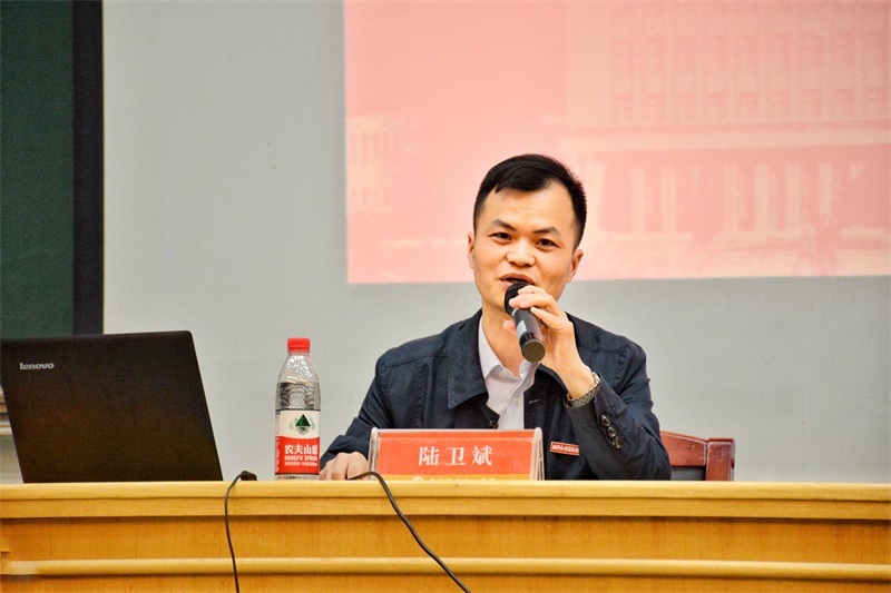 党总支副书记陆卫斌在主持会议时,希望同学们围绕学风建设、寝室卫生和学生精神面貌三个方面,正视问题、改进不足,担当起中文学子作为学校一份子应有的责任,展现良好精神风貌。